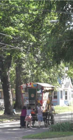 Artisan market day. The gypsy cart is rolling down Fulton Street, turning into a side road, making its way home.
